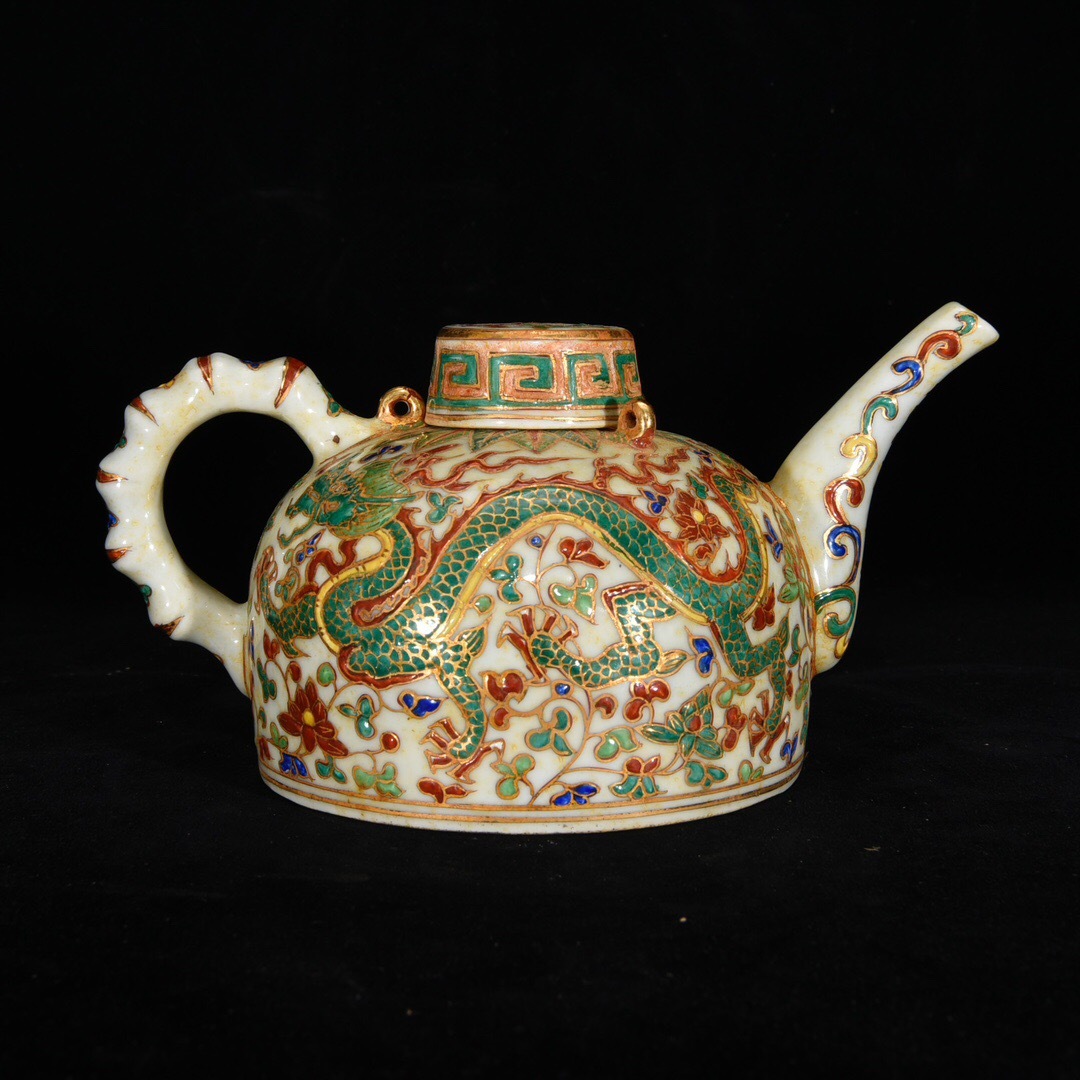 - 蔵友旧蔵出 明 宣德年製款 五彩 描金 龍紋 酒壺 古陶瓷品 置物 古賞物 中国古玩 中国古美術品