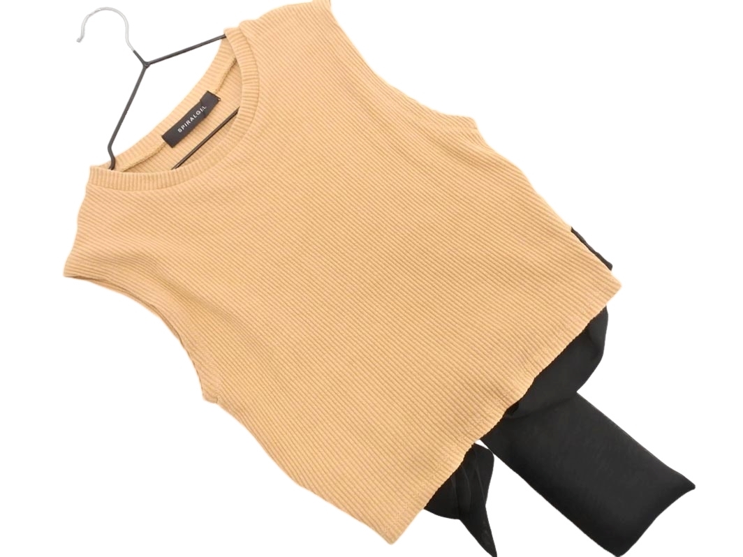 > SPIRALGIRL スパイラルガール リボン ノースリーブ カットソー sizeF/黒xベージュ ■◆ ☆ feb2 レディース