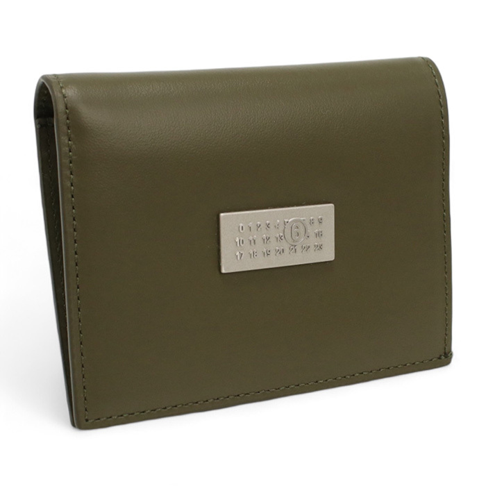 - エムエムシックス MM6 二折財布小銭入付き ブランド メタルロゴプレートSA5UI0015 P6418 T7428カーキ