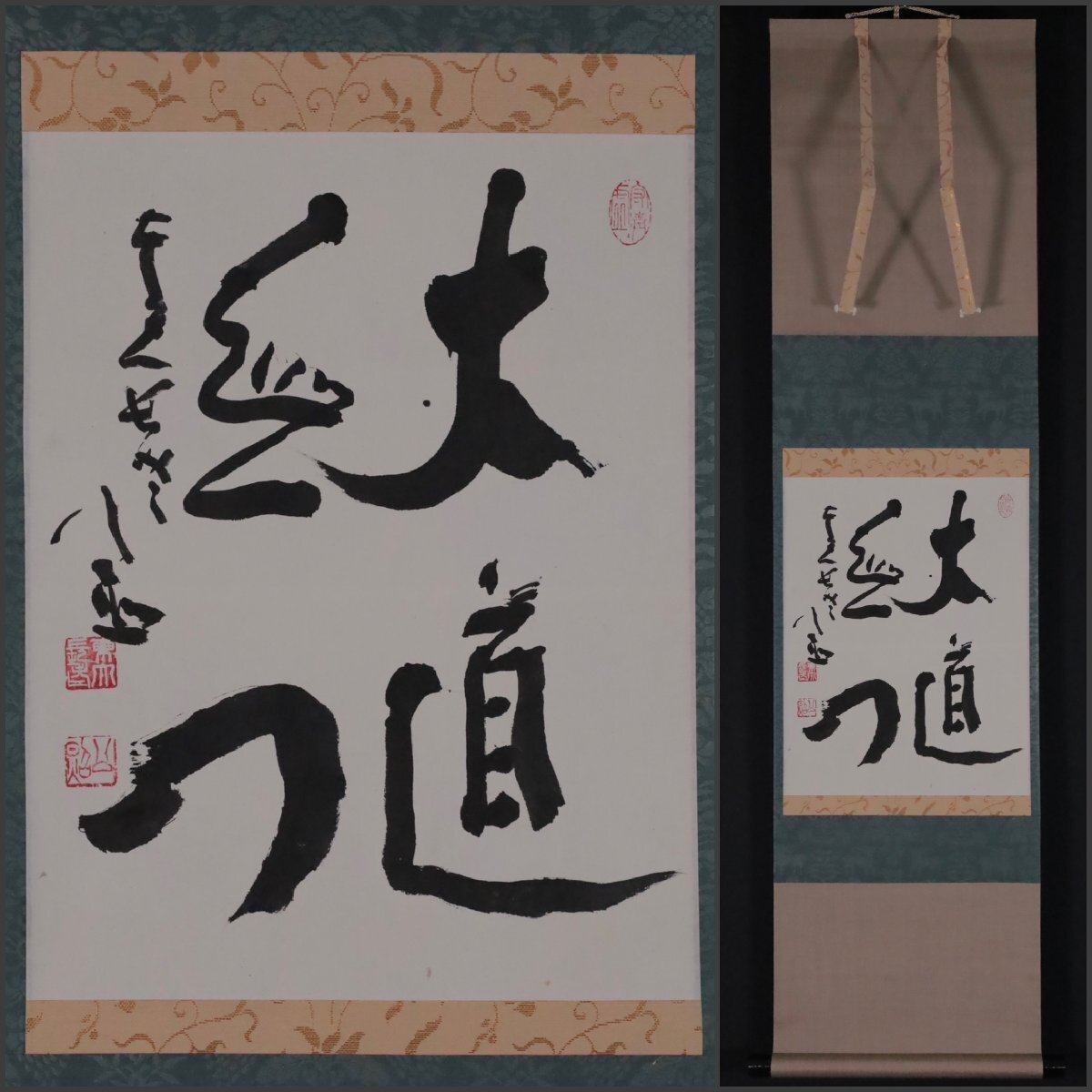- 【模写】吉】12348 清水公照 書「大道無門」 共箱 華厳宗 東大寺 仏教 兵庫県の人 茶掛け 茶道 禅語 掛軸 掛け軸 骨董品