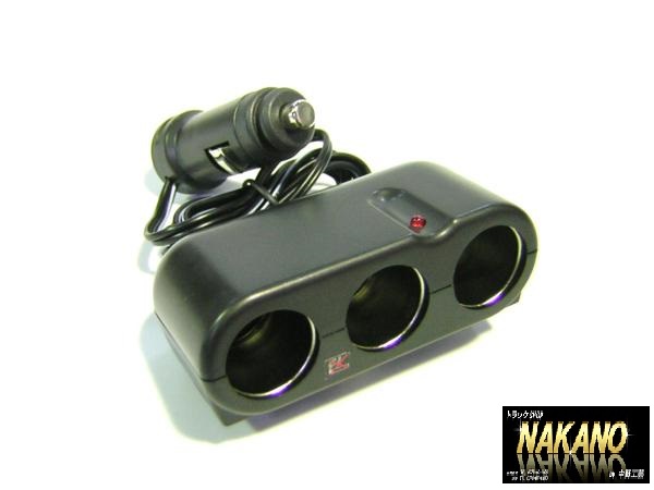 - トラック用 シガーソケット3連 コードタイプ 24V 三股電源 トラック用電源取り出し 電源分岐 シガーソケット分岐