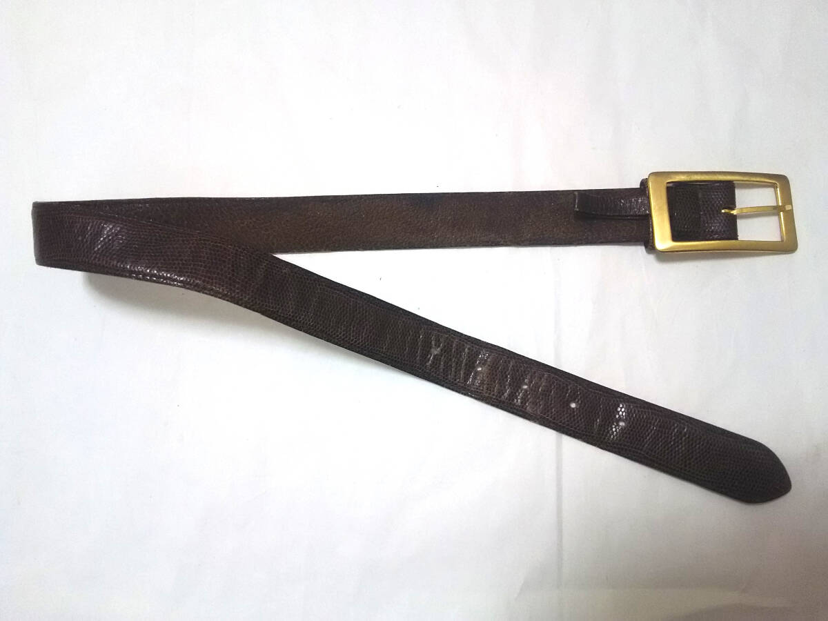 - 昭和レトロ BASCO パイソン ベルト / 蛇革 蛇皮 へび革 へび皮 / 古着 / カラー (茶色 ブラウン 金 ゴールド) / バスコ アイテム