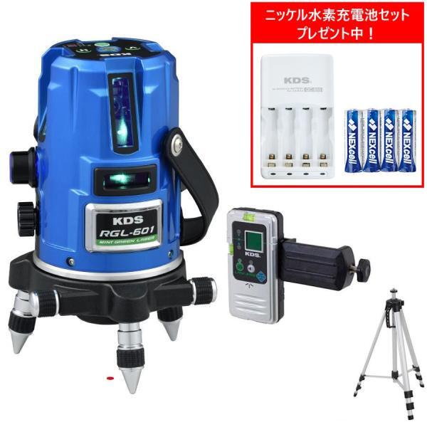 > (ニッケル水素充電池セットプレゼント) ムラテックKDS RGL-601RSA ミントグリーンレーザー墨出器 (本体・受光器・三脚・新ケース付き)