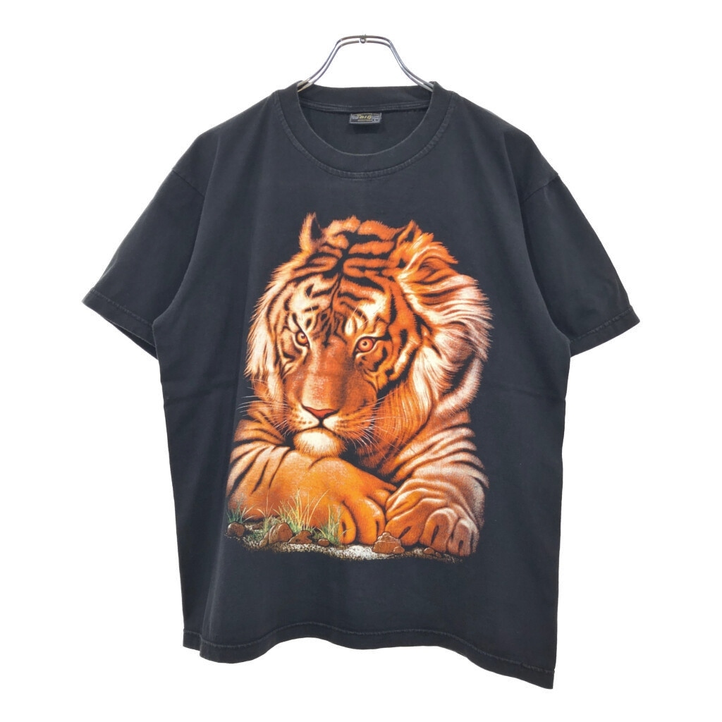 - アニマルプリント タイガー 半袖Tシャツ ブラック(メンズ L)中古 古着 U2357