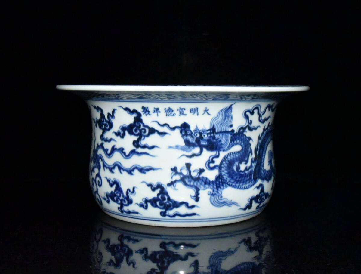 - 【超珍館蔵】明 宣德年製款 古陶瓷品 青花 云龍紋盆 置物 古賞物 古美術品 稀少珍蔵品