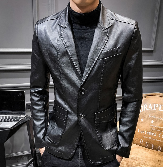 - テーラードジャケット 新品 メンズ ブレザー レザージャケット 革ジャン スリム 紳士 アウター トップス カジュアル 黒/XL