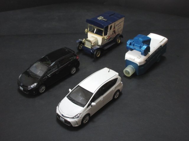 > イ948◇ トヨタ プリウスα ホワイト ブラック 自動車 ミニカー クラシックカー型 シャンプーボトル 貯金箱 鍵付 // 計4点 // 現状渡し