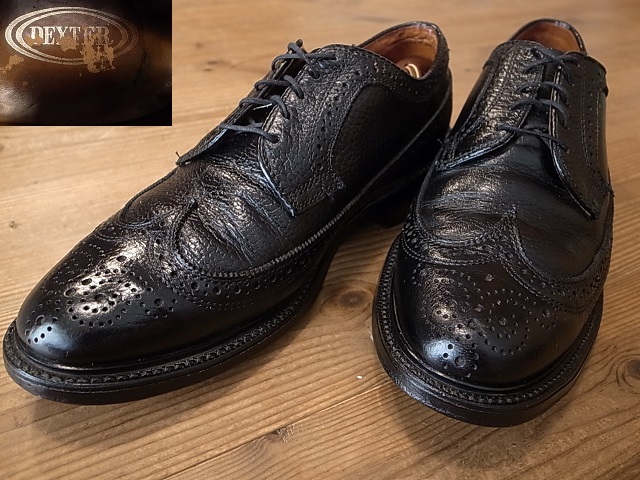 > DEXTER 革靴 黒 ビンテージ ロング ウィングチップ メダリオン レザーシューズ USA仕入 サイズ 81/2D 約 26.5㎝