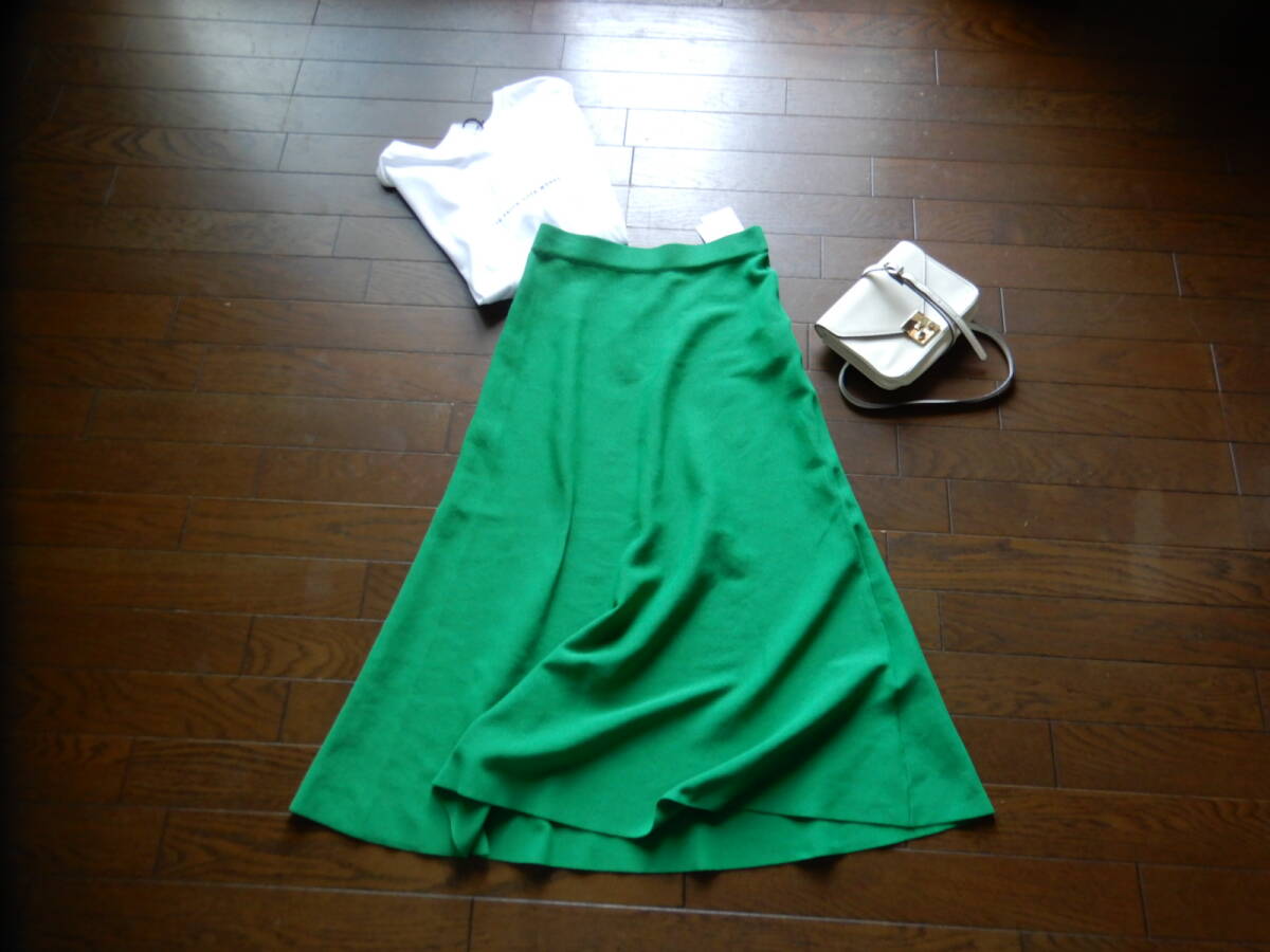 > ★新品未使用【FRAMeWORK/フレームワーク】定17600円 ’22大人可愛いマキシ丈綿ニットフレアースカート 38 グリーン系 日本製
