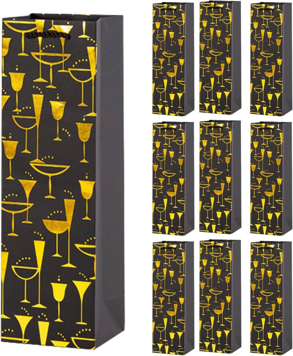 - グラスゴールド色 ワインバッグ 1本用 ボトルバッグ ギフト ワイン 手提げ袋 10枚セット