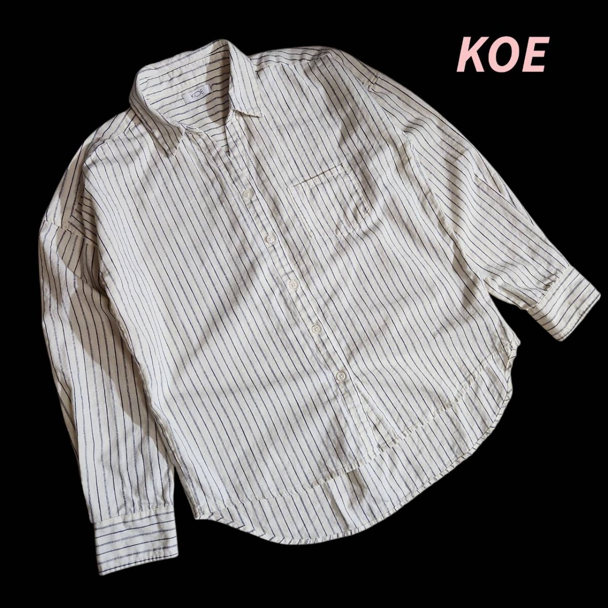 - レディース KOE ストライプ・オープンカラー長袖シャツ ゆったりデザイン 表記S 生成り&ネイビー 84433
