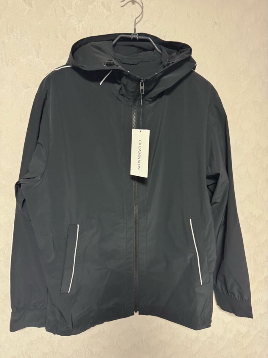 > カルバンクライン ストレッチ ナイロンジャケット パーカー 新品 ブラック L~XLサイズ パイピング CK