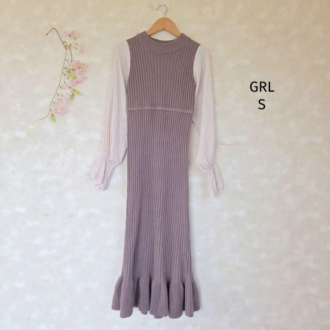 - グレイル GRL ニットワンピース【S】ロング 紫がかったグレー 長袖 リブ