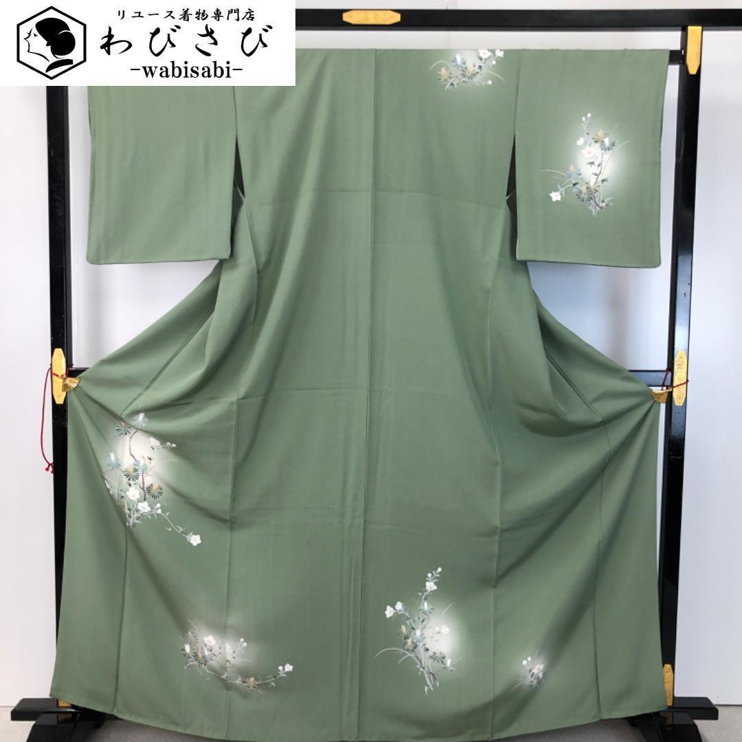山鳩色のお色味、暈しに上品な花模様の柄裄がデザインされた素敵な友禅のお品でございます。