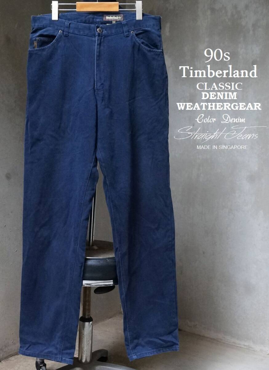 > 90s ティンバーランド Timberland CLASSIC DENIM WEATHERGEAR 紺 ネイビー カラーデニム ストレート ジーンズ 34 W86