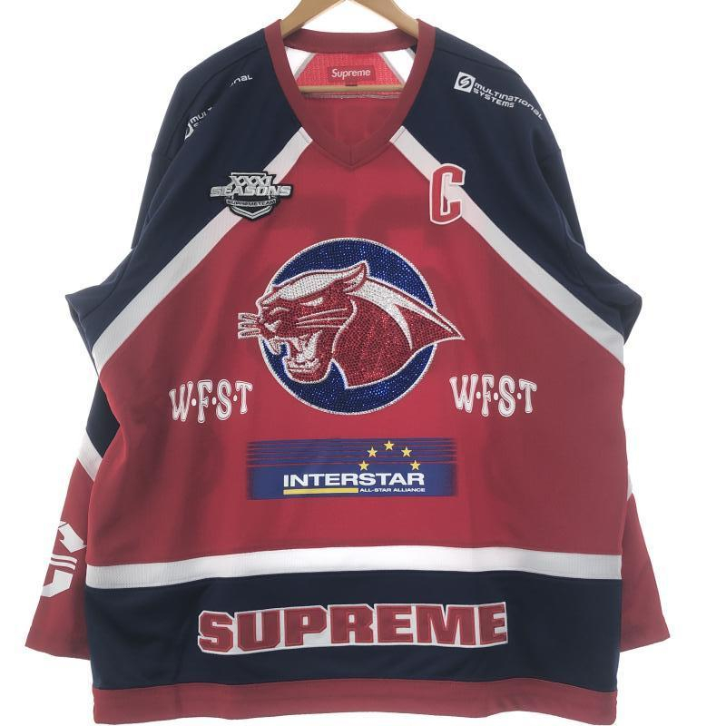 > 【中古】Supreme Rhinestone Hockey Jersey ホッケージャージ L 25SS レッド シュプリーム[240010477367]