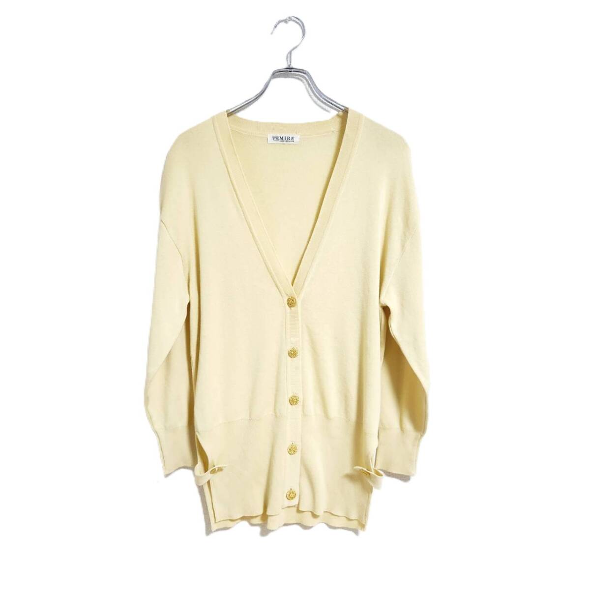 - MIRE カーディガン Vネック L リボン イエロー 綿 アクリル混 上品