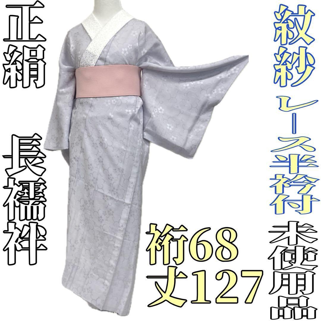 - 【着物と帯 時流】J25681◆正絹 長襦袢◆紋紗 レース半衿付 薄紫 美品