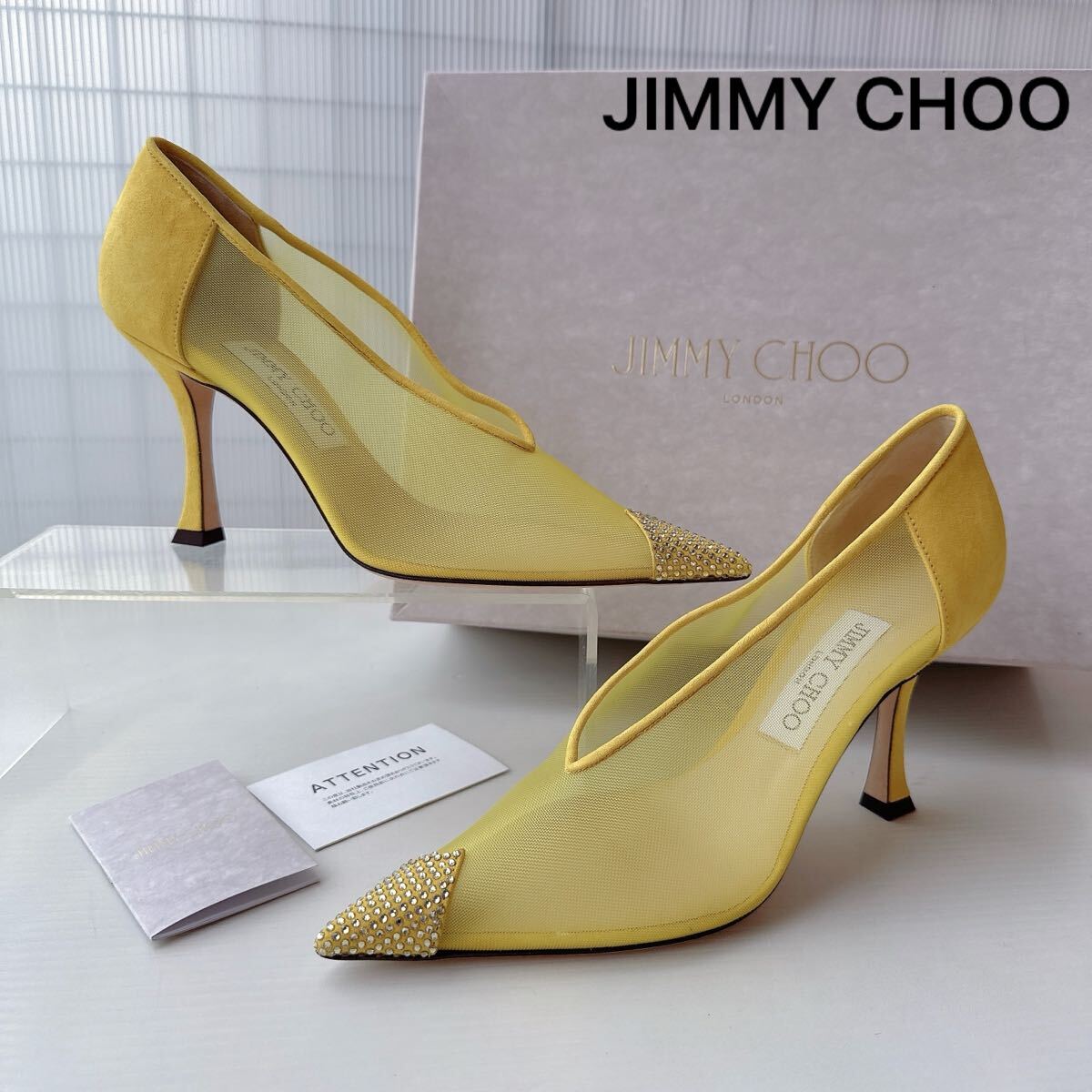 - JIMMY CHOO ジミーチュウ クリスタル ビジューストラップ ラインストーン装飾 サンダル ハイヒール パンプス 極美品 37 靴 イタリア製