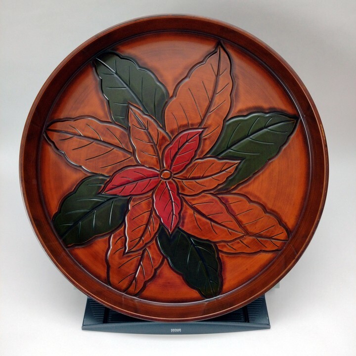 - 【送料無料】 八雲塗 丸盆 木花 木果 木彫り 天然漆★おもてなし盆 お盆 大きめ 39cm 山根八雲塗本舗
