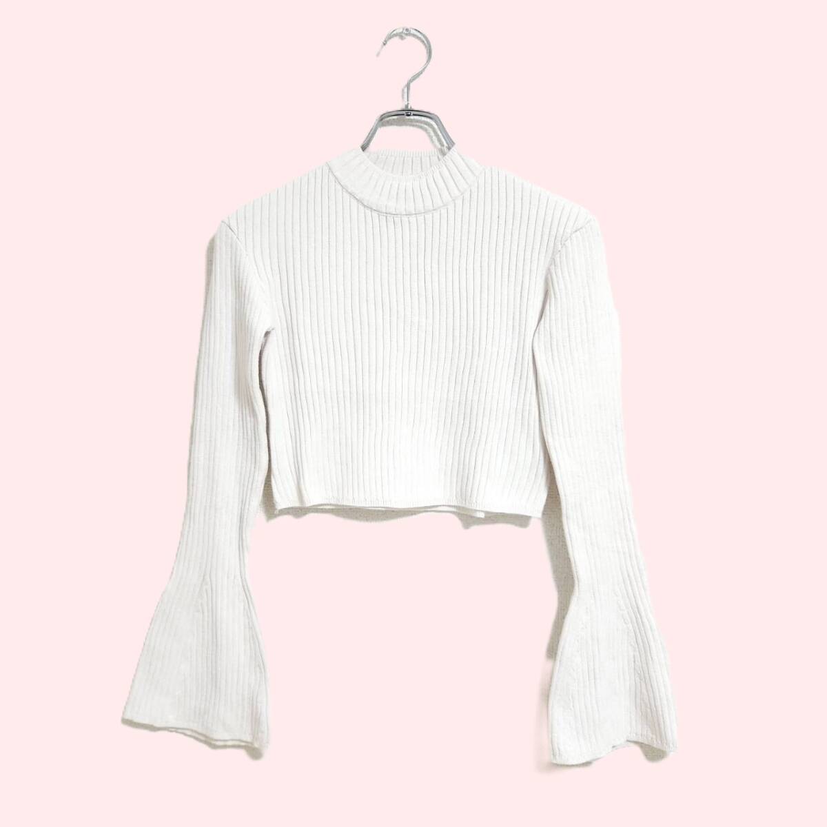 - GRL リブニット フレアスリーブ クロップド丈 白 M トレンド インナー 春