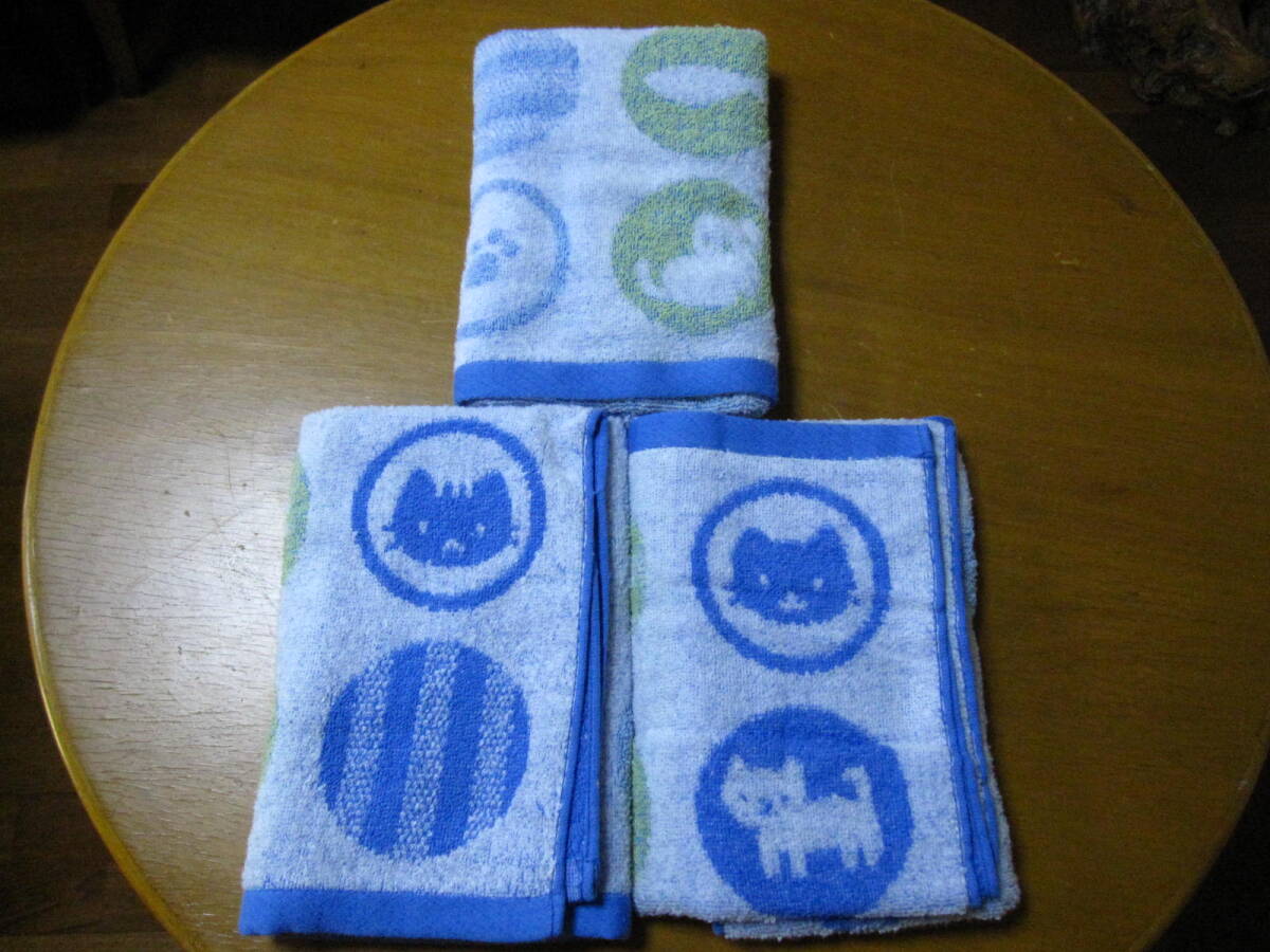 - バスタオル 新品 3枚 猫 魚や骨 ライン 絵柄 模様 動物 格安 男女 兼用 秋 冬 膝掛 綿 インテリア タオルケット 可愛い セット キュート