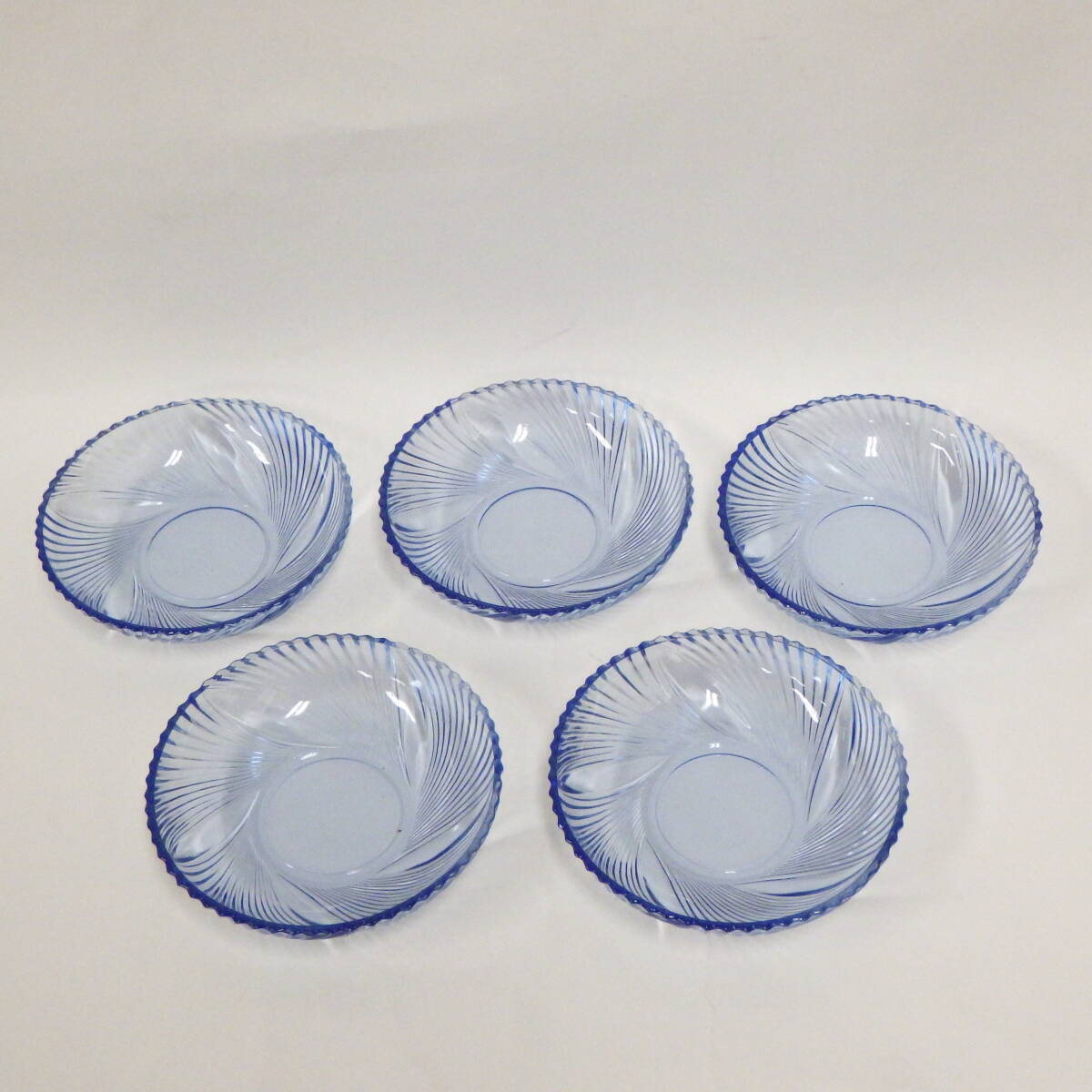 - ブルー 青色 水色 ガラス 小皿 ガラスサンデー 皿 5枚セット
