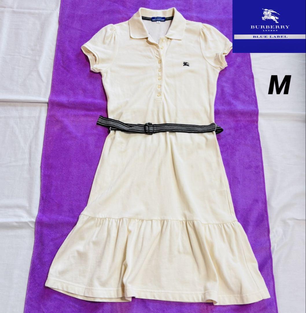 > BURBERRY BLUE LABEL バーバリーブルーレーベル 半袖 ワンピース ホース 刺繍ロゴ ベルト付き ホワイト系 M 三陽商会
