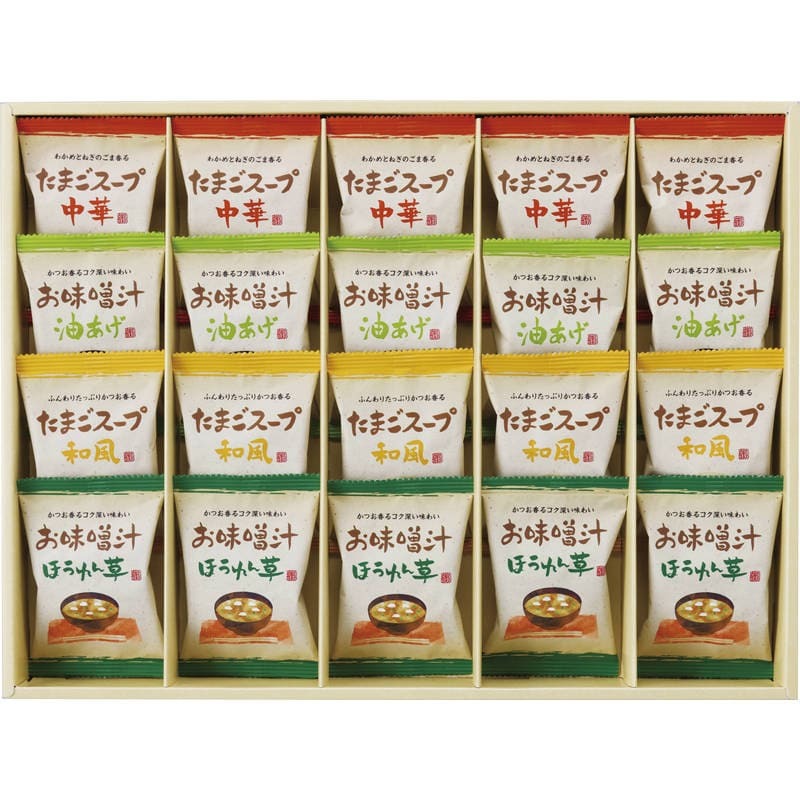 ▼▼▼▼▼▼注意事項▼▼▼▼▼▼・送料込み(送料800円が商品価格に含まれています) 一部地域では追加送料あり。・お取り寄せ商品です。弊社にて手配後、メーカー・卸業者からの直送になります。・まれにメーカー欠品、出荷遅延等が発生致します。問題発生時は別途メールにてご連絡致します。・配送方法の指定、日時指定、置き配、ギフト対応、他商品との同梱配送などは対応できません。・まとめ買いや複数購入の場合は通常より発送に時間が掛かる場合がございます・複数個口の場合、2階以上への搬入ができない場合があります。(その場合は1階での受け渡しとなります)・大型連休、お盆、年末年始などは発送をお休みさせていただく場合がございます・メーカー都合により、パッケージは予告なく変更される場合がございます・梱包用のダンボールはリサイクル品を使用させていただきます。・注文に関するご連絡(注文確定通知・発送通知など)はメールでご案内させていただきます※商品ページの内容について、少しでもご不明な点などがございましたら購入前に一度ご連絡ください▲▲▲▲▲▲注意事項▲▲▲▲▲▲〇商品説明かんたん、美味しい、フリーズドライお湯を注ぐだけでおいしさそのままのお味噌汁とスープの詰合せです。お味噌汁(油揚げ)/ふんわり食感の油揚げと磯の香り漂うわかめを合わせました。たまごスープ(中華)/チキンエキスをベースにブイヨン、ごまの風味と生姜を効かせました。お味噌汁(ほうれん草)/信州産の米みそを使用し、かつおの風味をきかせたコク深い味わいのお味噌汁にほうれん草とわかめを合わせました。たまごスープ(和風)/かつおだしと昆布だしを使い、和風に仕立て、ふんわり卵にかつおが香ります。〇商品仕様【パッケージサイズ】425×40×320mm【内容】お味噌汁×10(ほうれん草・油あげ×各5)、たまごスープ×10(和風・中華×各5)【アレルゲン】卵・小麦【生産国】日本【パッケージ形態】化粧箱入【保存方法】常温【賞味期限】製造日より約365日(出典:彩食工房)