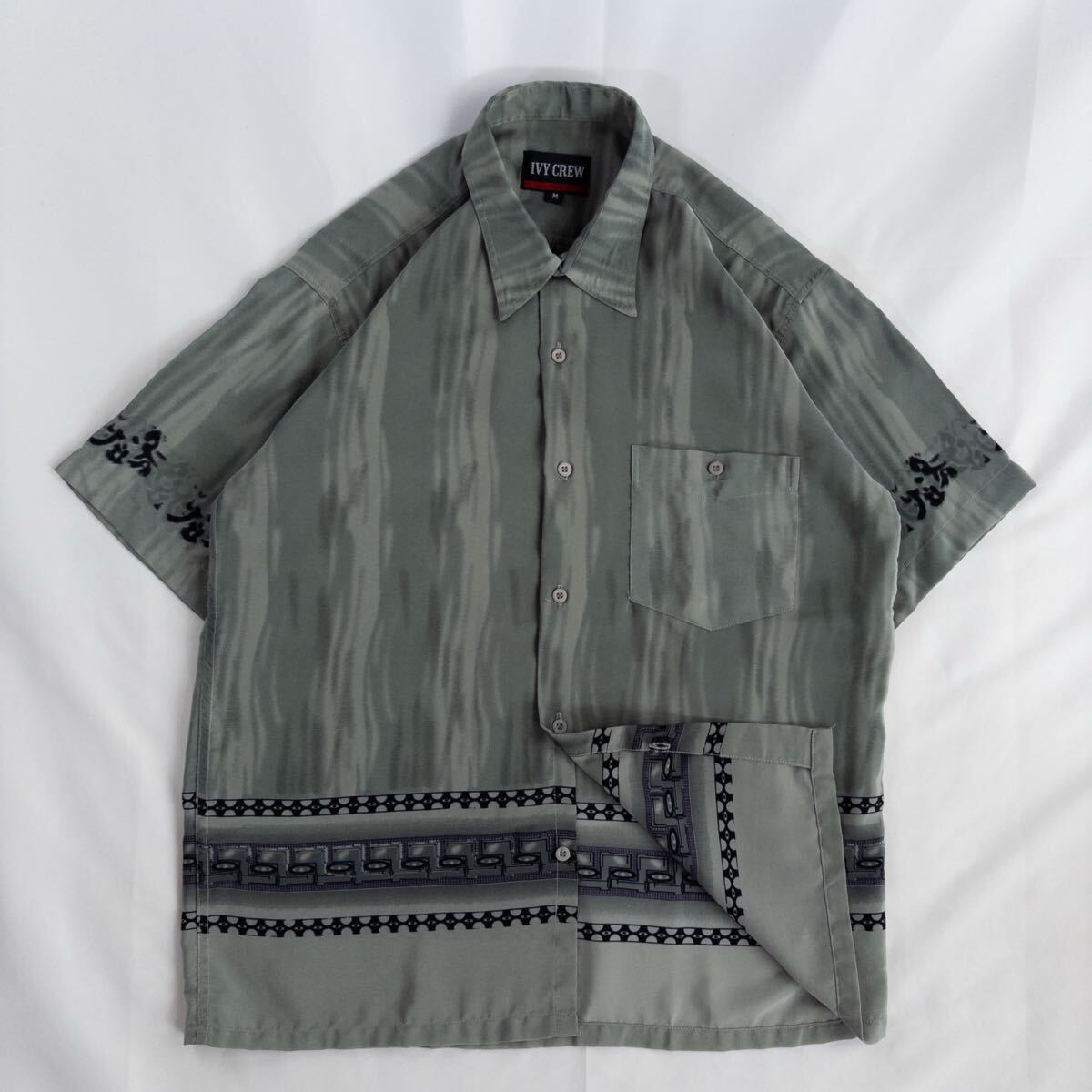 - US Vintage 00s IVY CREW シルク くすみカラー タイダイ ムラ染め プリミティブ エスニック 民族 幾何学模様 アート 総柄 デザインシャツ