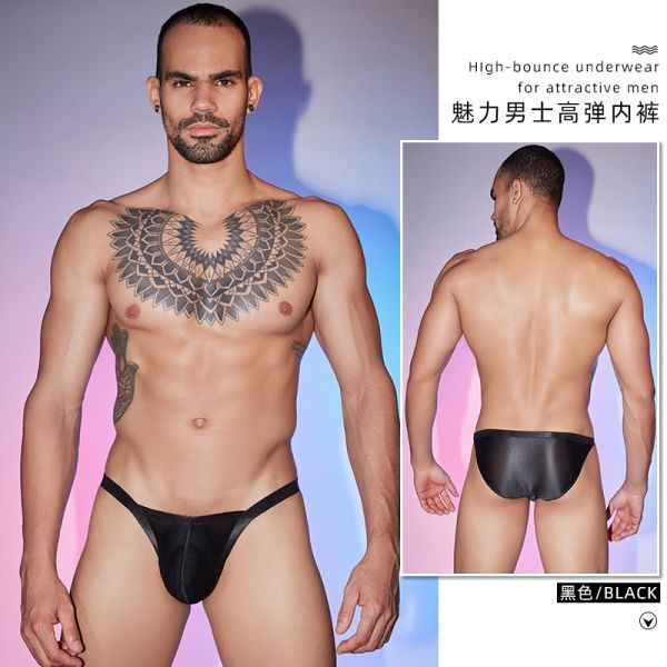 > 161-103-8 メンズ 光沢 ツヤ ヌード ブリーフ ショーツ【ブラック,F】男性 セクシー パンツ Gストリング ランジェリー ゲイ パンツ .1