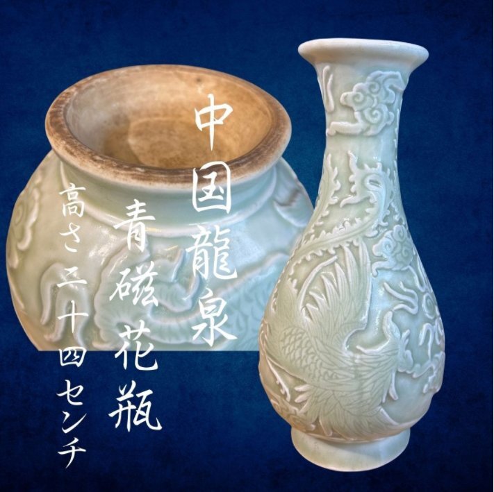 - S8012 中国龍泉 青磁花瓶 花器 花瓶 中国古美術 ヤマト 80サイズ
