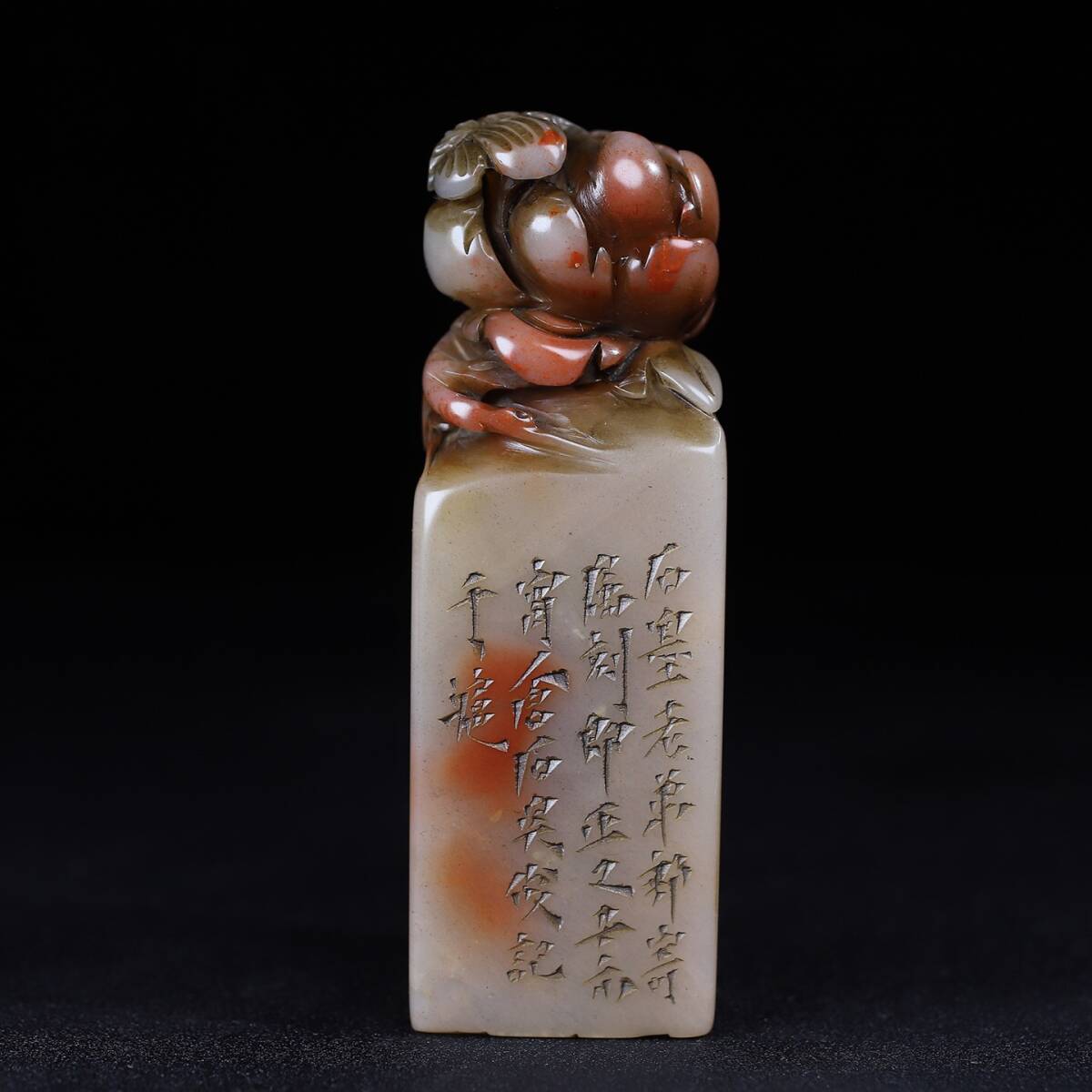 - 【超珍館蔵】寿山石 芙蓉石 細密彫 蝶戀花印章 印章 印鑒 文房具 書道品 古賞物 古董品 古美術品 時代物 旧家蔵出 稀少珍蔵品