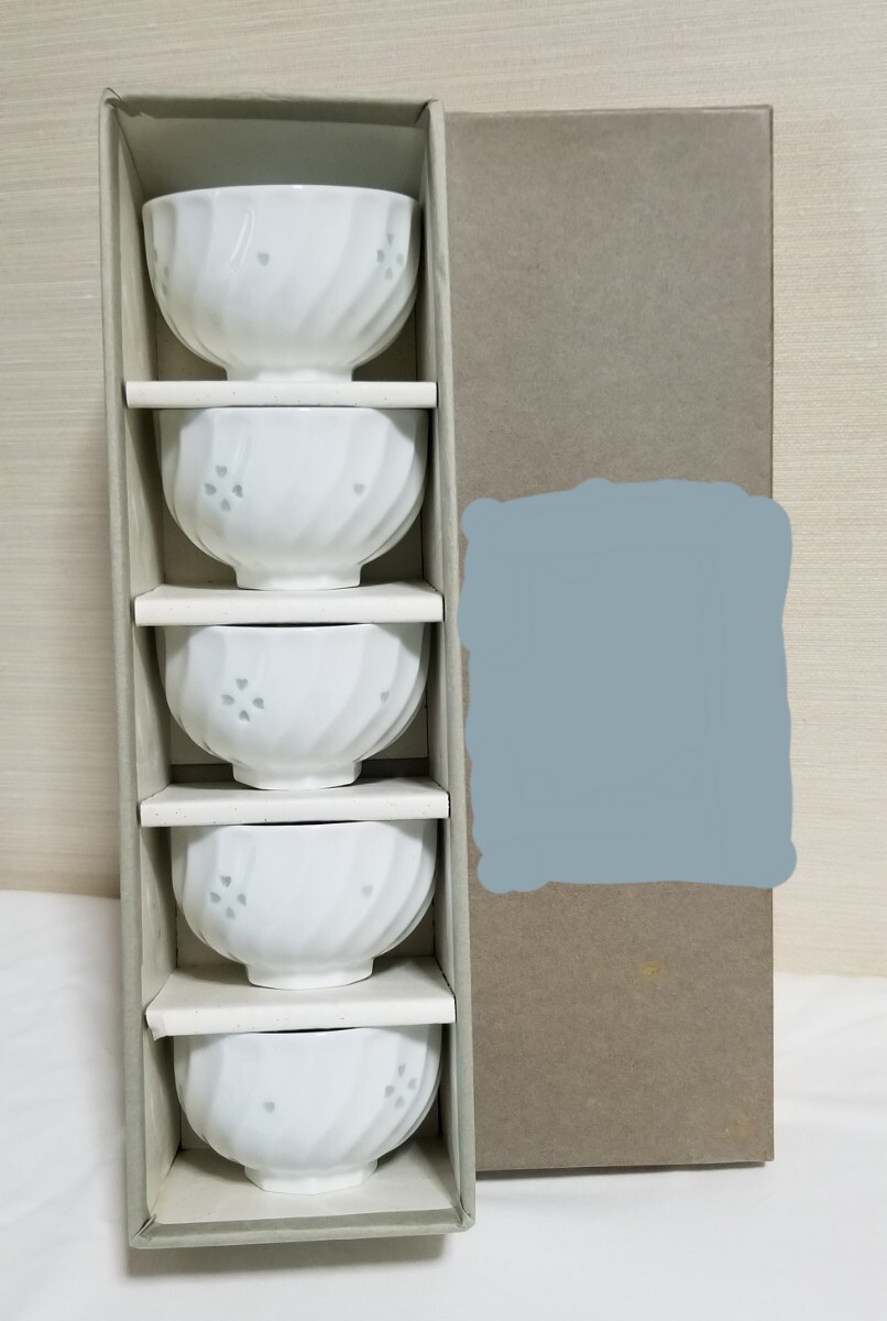 - T-408 美品 有田焼 春峰 透かし蛍 湯呑み茶碗 5客セット 茶器 和食器 湯呑 焼き物 陶器 保管品