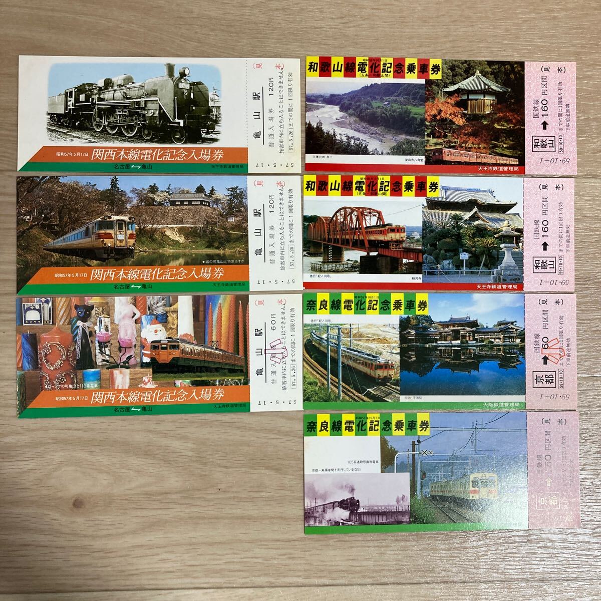- n5217 『奈良線電化』 記念乗車券/『和歌山線電化』記念乗車券/関西本線電化記念入場券/7枚セット 見本品 57年 59年 昭和レトロ