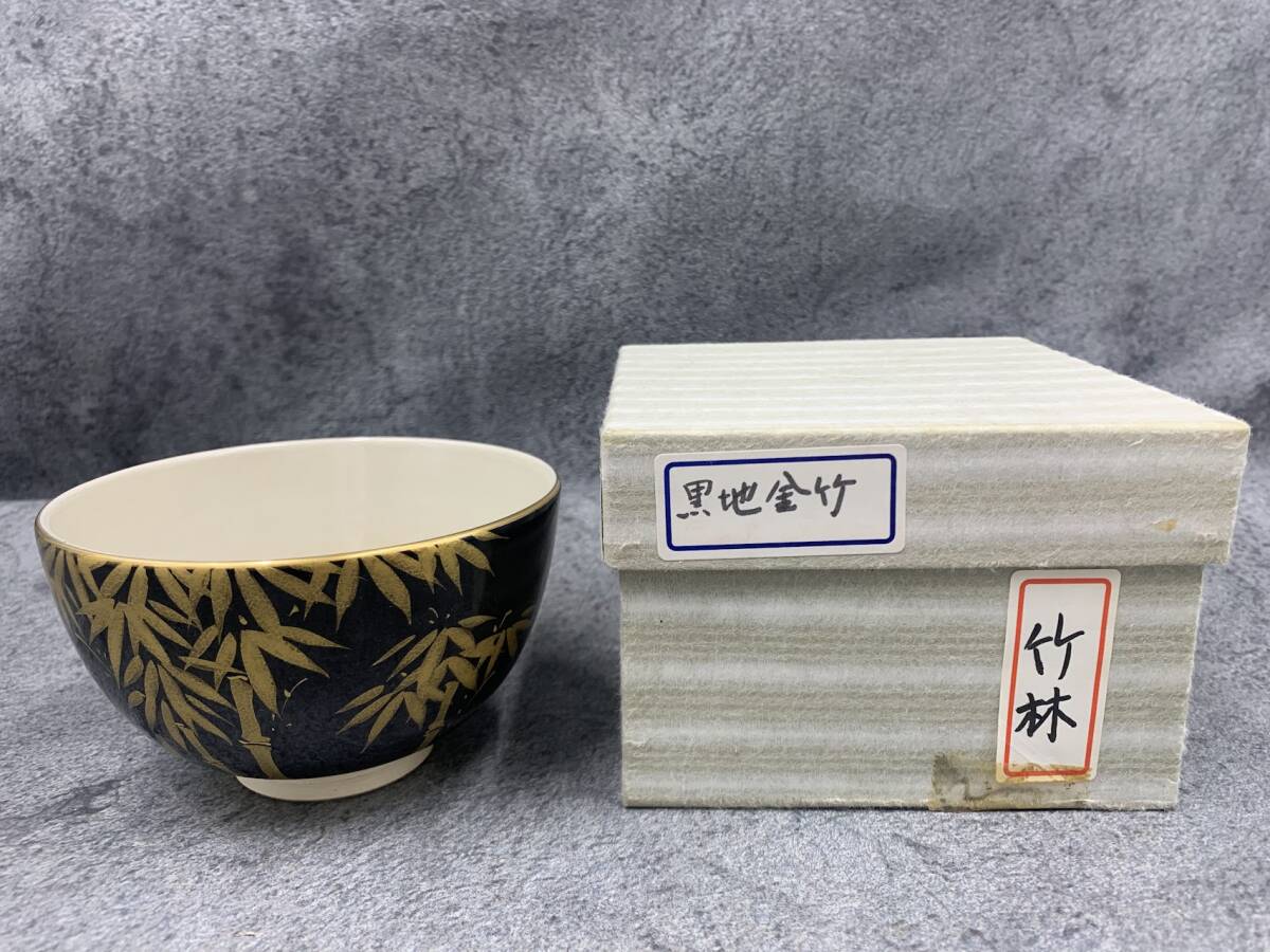 - 【 寿楽作 竹林 茶碗 黒地金竹 ① 】焼物 京焼 茶道具 抹茶碗
