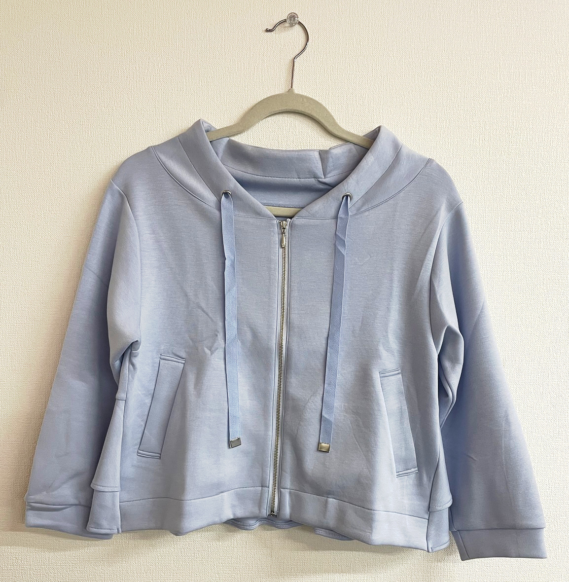 - レディース ジップアップ バックフリル ジャケット パーカー ライトブルー