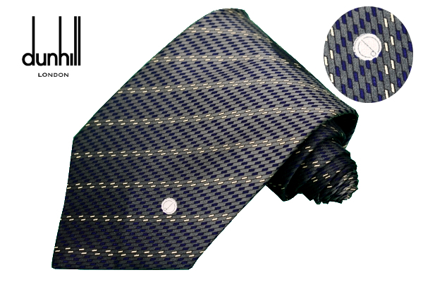 > N-2902★送料無料★超美品★dunhill ダンヒル★イタリア製 dロゴ ネイビー グレー グラデーション レジメンタル 光沢 シルクネクタイ