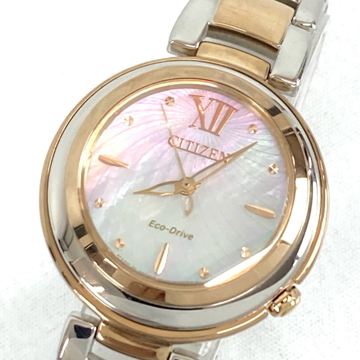 - CITIZEN L シチズン エル エコドライブ アナログウォッチ ラウンドフェイス 白蝶貝 シェル文字盤 サファイアガラス 5BAR防水 腕時計