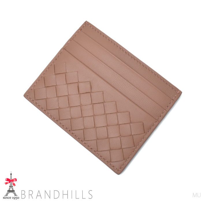 - ボッテガヴェネタ カードケース イントレチャート レザー ピンクベージュ 162150 BOTTEGA VENETA ほぼ未使用