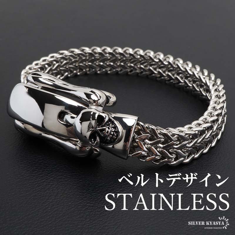 > サージカルステンレス チェーンブレスレット ベルトブレスレット ごつめ スカルブレスレット メタルブレスレット メンズ 金アレ対応