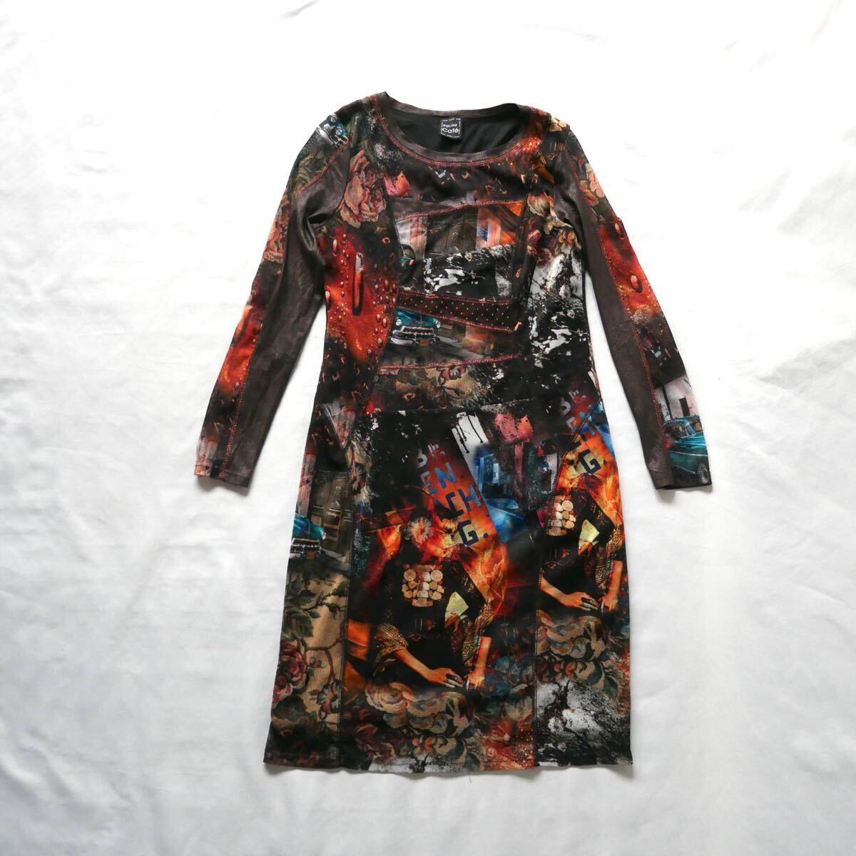 - vintage ポリエステル Y2K ワンピース フォトプリント ヴィンテージ 古着 pause cafe 袖シースルー