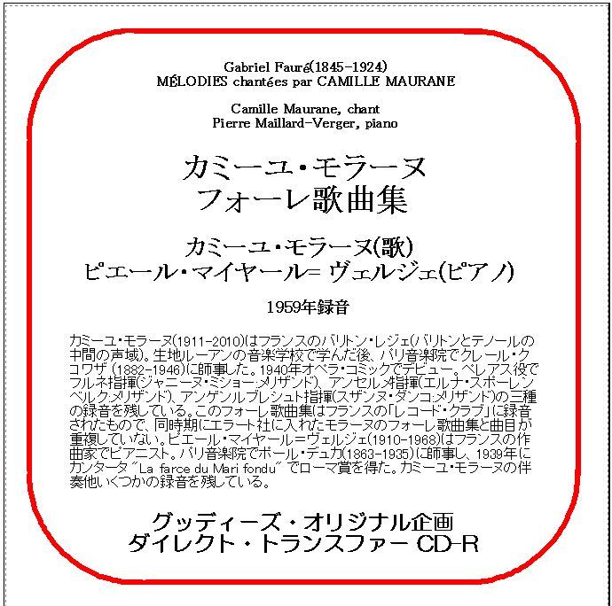 - カミーユ・モラーヌ~フォーレ歌曲集/ダイレクト・トランスファー CD-R