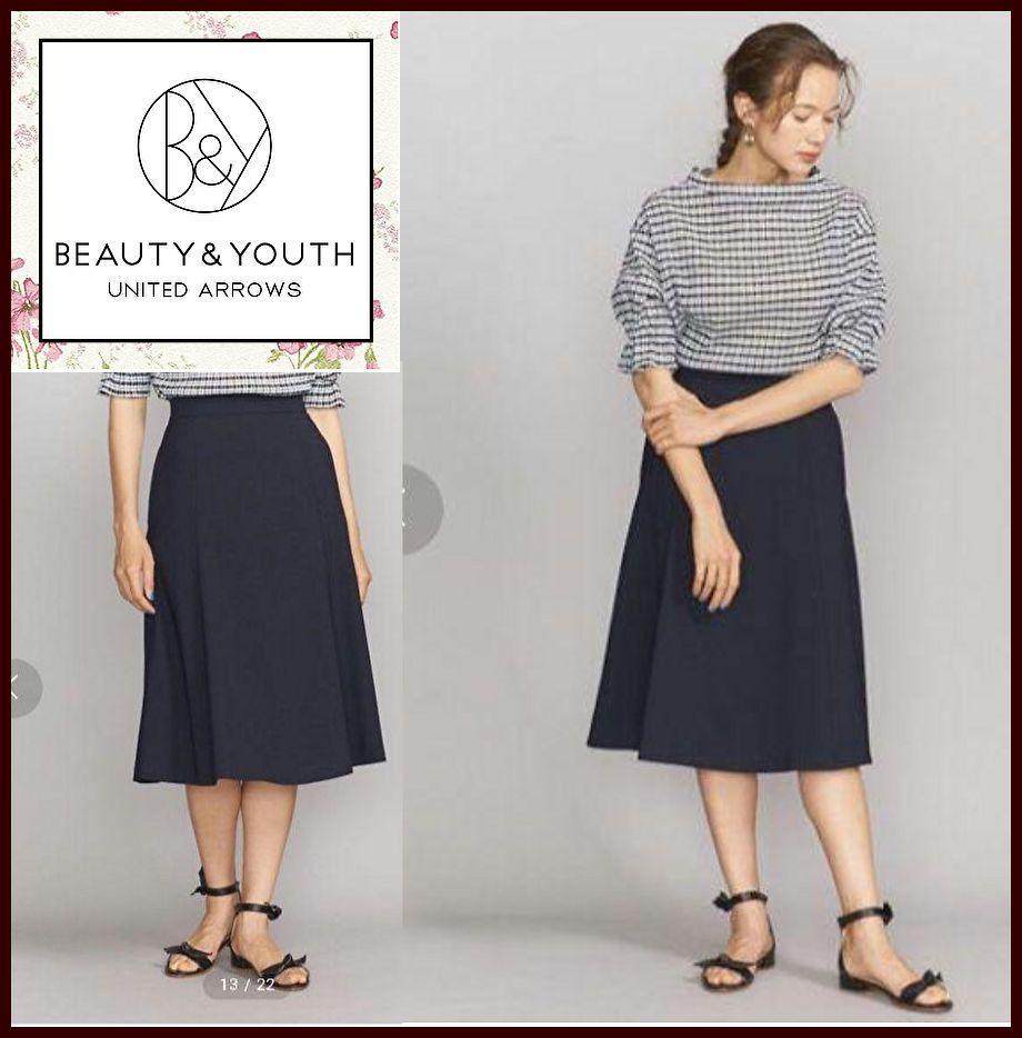 - 【ビューティーアンドユースユナイテッドアローズ】フレアスカート 紺 M ミモレ丈 BEAUTY&YOUTH UNITED ARROWS匿名発送 通勤 学校行事