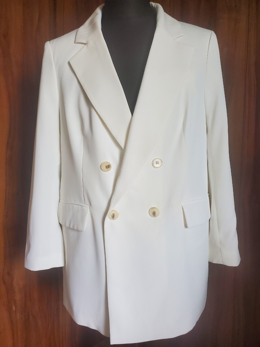 - H&M DIVIDED エイチアンドエム 白 テーラード ジャケット スーツ ダブル ホワイト オフホワイト L サイズ M 送料無料