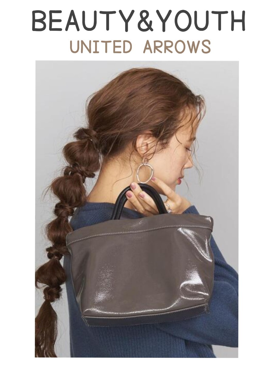 - 送料無料★BEAUTY&YOUTH UNITED ARROWS フェイクレザーエナメルトートバッグ 2WAY グレー