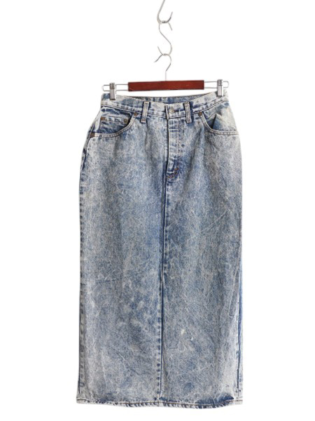 > 90s USA製 リーバイス 505 ケミカルウォッシュ ロング デニム スカート レディース S 程/ オールド ロング丈 タックなし 赤タブ きれいめ