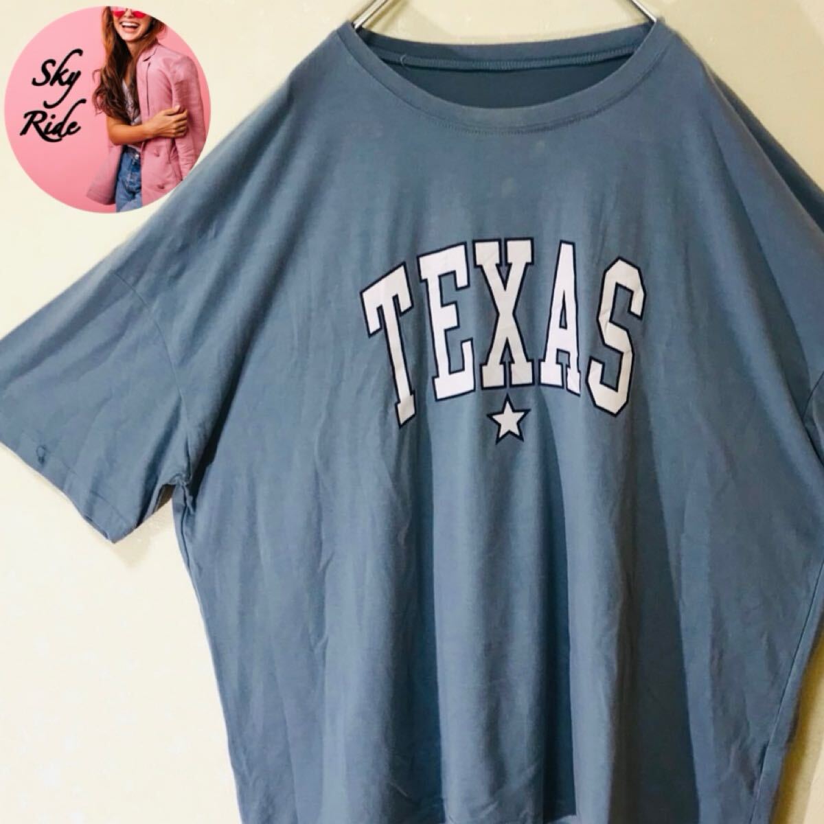 > 【美品】 SHEIN CURVE シーインカーブ TEXAS ビッグプリント メンズ ビッグシルエット Tシャツ サックス 3XL 古着 #TT0194