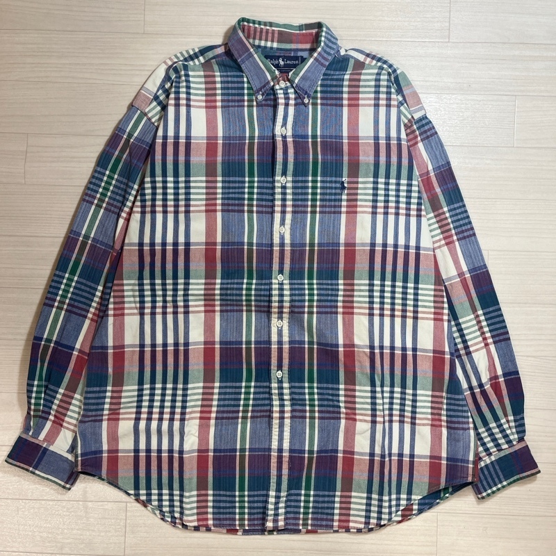 - Ralph Lauren/ラルフローレン/胸ワンポイント/ポロプレイヤー刺繍/マドラスチェック B.D. シャツ/長袖シャツ/XXLサイズ/大きいサイズ