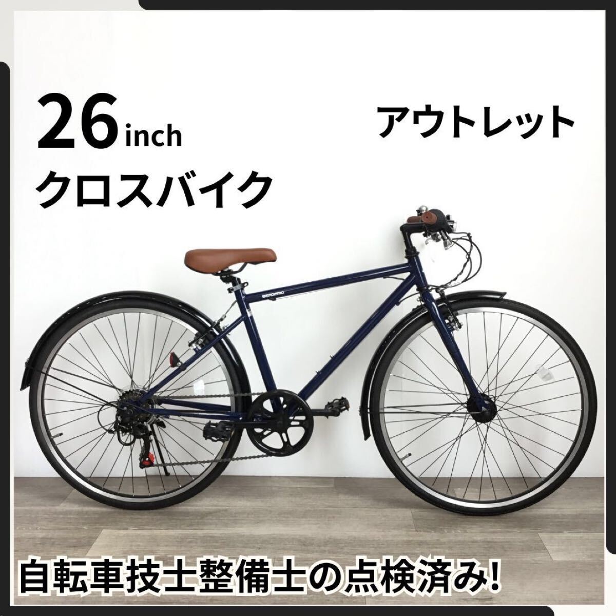 > 26インチ オートライト 6段ギア クロスバイク 自転車 (2724) ネイビーブルー ZX23046770 未使用品 ●